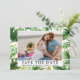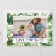 Modern Watercolor Tropical Greenery Palm Leaves Save The Date Photo Engagement Announcement Card