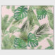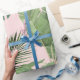 Watercolor Tropical Leaves Pattern on Pink Wrapping Paper