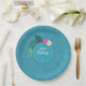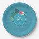 Colourful paper plates featuring a round teal frame bordered by watercolor hibiscus blooms and palm leaves. The repeating, palm leaf background pattern is optional and can be changed if preferred. Script text of 'Love and Thanks' is also optional. Add your names and wedding date using the provided template. This tropical design is perfect for summer, beach and tropical weddings, birthdays and other special events. Search ID577 to see matching products.