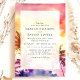 Embrace the warmth and beauty of your love with this Tropical Sunset Wedding Invitation. The design features a harmonious blend of sunset colours that melt into each other, creating a stunning backdrop for your wedding details. Palm tree silhouettes add an exotic charm, making it perfect for beachside ceremonies or any couple looking for a touch of paradise. Let this invitation be the first glimpse into the celebration of your union as vibrant and heartwarming as the sunset itself.