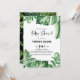Tropical theme baby shower invitation featuring watercolor illustration of variegated monstera and other tropical plants with matching greenery pattern. Personalize by adding names, date, time, venue and other event details. This greenery invitation is perfect for summer and luau baby showers.