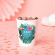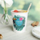 Colourful paper cup design featuring a round teal frame bordered by a bold toucan sitting among watercolor hibiscus blooms and palm leaves. This tropical design is perfect for summer, beach and tropical weddings, or easily adapted for birthdays and other events. Search ID577 to see matching products.