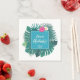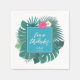 Colourful wedding design featuring a square teal frame bordered by watercolor hibiscus blooms and palm leaves. The white background is optional and can be changed if preferred. Provided script text 'Love and Thanks' as well as the bride and groom's initials and wedding date are all optional. These tropical napkins are perfect for summer, beach and tropical weddings, birthdays and other events. Search ID577 to see matching products.