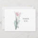 Funeral, bereavement thank you card. Family name and thanks on the back. Black Typography. White background. Watercolor tulip. Colourful. Deceased information.