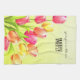 Belle aquarelle tulipes bouquet art avec un nom monogramme et un court message avec un arrière - plan frais ensoleillé. Impressionnant aquarelle réaliste. Personnalisez en changeant le nom monogramme et le texte.