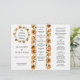 Tri-fold wedding program with watercolor orange tulips, on the back of the card is an optional complementing spring floral wreath. Please note: Changing the paper type may make the program difficult to fold.
