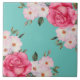 Watercolor Vibrant Pink White Roses Turquoise Back Tile