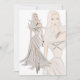 A hand painted watercolor blonde fashion model wearing a flowing beige gown on a stylish charity benefit fashion show invitation
