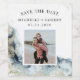This save the date hand wine label features watercolor brush stroke in deep navy blue colours with gold accents imitating waves on the beach which makes it a perfect choice for a summer or beach wedding. It is minimalistic and elegant in layout and font choices, also very easy to customize. Customize with your own photo or delete the photo and leave only script on the front. Other items from this collection complement it very well so do check out the whole collection