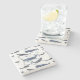 Watercolor Whale & Anchor Pattern Stone Coaster