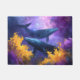 Dive into ocean beauty and peaceful coastal vibe with watercolor two whales swimming gracefully among abstract sea plants.