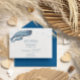 Simple and cute, this birthday invitation design is the perfect nautical-themed way to invite friends and family to your kid's birthday party. Features hand-painted watercolor blue whales with air bubbles. The back features matching blue colour with white paint specks. All blue typography is changeable to fit your party planning needs. Has matching accessories.