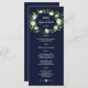 Watercolor White Floral Dark Blue Wedding Menu
