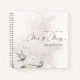 Watercolor White Floral New Mr Mrs Guest Book. An alternative option for your wedding day guest book, perfect for your Guests to write their good wishes, this design has elegant set script for Mr and Mrs and the rest of the text can be easily personalized, including the words on the back cover. With soft white florals and feather to the bottom left and a backdrop watercolor pastel wash.