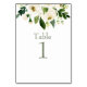 Black Text Table Number. Watercolor White Floral & Foliage.
