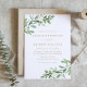 Invite family and friends to your wedding with this customizable greenery wedding invitation. It features watercolor illustrations of green foliage, white flowers, and a matching botanical pattern. This white floral wedding invitation is perfect for spring and winter weddings. Personalie by adding your details.