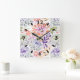 Watercolor white, pink flowers square wall clock