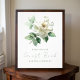 Direct guests to your wedding guest book with this elegant sign. Featuring a modern design with watercolor white roses and botanical greenery, it complements your winter or spring celebration in a beautiful green and white palette.