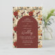 Watercolor wild flower deep red ivory arched invitation