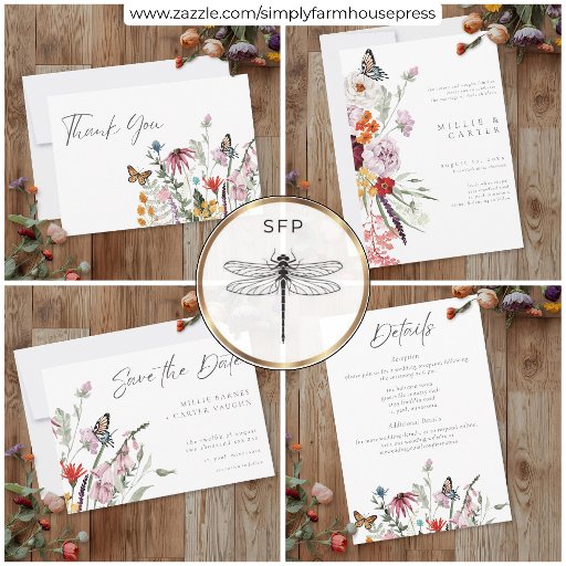 Watercolor Wildflower Butterfly Modern Wedding Save The Date