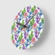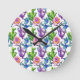 Watercolor Wildflower Cactus Pattern Round Clock
