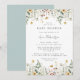 This design features a watercolor wildflower border in shades of red, gold, green, and blue. Perfect for a rustic or boho-themed baby shower.