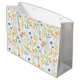 This gift bag features a watercolor wildflower pattern in shades of green, yellow, orange, and blue.