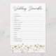 Modern, boho bridal shower game card for "Wedding Scramble" features a romantic script font, modern serif font, and delicate wildflowers in soft shades of blush pink, yellow, purple, ivory, and green. Guests can write their answers on the lines and mark the hearts if their answer is correct.