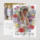 Express your gratitude in style with this personalized thank you card featuring an oval photo template at the centre, beautifully framed by original hand-painted watercolor wildflowers. The front design blends rustic charm with timeless elegance, making it perfect for wedding thank you cards. On the reverse, there’s space for a second photo and your custom thank you message, allowing you to share your favourite memories and heartfelt words with friends and family. The wildflower illustration is delicately detailed with blooms and greenery, creating a fresh, organic look that works beautifully for spring weddings, garden parties, and country-chic celebrations.