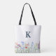 Watercolor Wildflower Womens Monogram Tote Bag