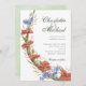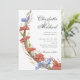 Rustic watercolor meadow wildflowers wedding invitation, summer flowers such as red poppies, blue cornflowers, grass and twigs. Semi-Wreath arrangement.