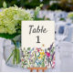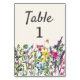 Colourful watercolor wildflower / on ivory cream and purple botanical garden vertically-formatted wedding table number. Design one for each table. Contact me for assistance with your customizations or to request additional matching or coordinating Zazzle products for your event(s)