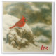 My photo of a Northern Cardinal perched on a snowy shrub converted to a watercolor style with AI