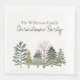 These simple and elegant, yet festive Christmas party napkins feature a cozy watercolor design. An image of a winter forest is placed across the bottom, with various trees sprinkled with snow.