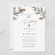 Watercolor Winter Spruce Twigs Pine Cone Wedding Invitation