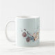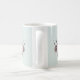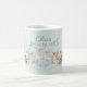 Coffee Mug | Add Name - Whimsical winter floral botanical spray of pine cones, eucalyptus leaves and winter branches - with two white deer and the text in calligraphy 'peace on earth' - on a very light mint green background. This is part of the Watercolor Woodland Deer Collection by WhimsicalArtwork™