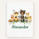 Watercolor Woodland Animals Forest Animals Drawing Notebook. Baby Animals include Bear, Deer, Moose, Raccoon, Bunny Rabbit, Fox and Owl on eucalyptus leaves. Add Name.