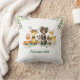 Watercolor Woodland Animals Throw Pillow. Baby Animals include Bear, Deer, Moose, Raccoon, Bunny Rabbit, Fox and Owl on eucalyptus leaves and forest greenery. Add Name.