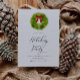 Simple and festive Holiday party invitation template card featuring watercolor illustration of a green wreath with a red bow. Customize this card by adding your own party information.