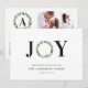 Watercolor wreath joy monogram holiday family card