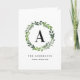 Real foil watercolor wreath photo initial / monogram holiday card. Beautiful watercolor foliage.