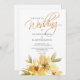 This invitation has an airy elegance that is perfect for your special day. This design features soft yellow florals and custom typography on a crisp white background. Add your wedding information to complete the look.