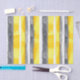 Watercolor yellow grey and white striped tissue paper. Design of hand painted grunge style vertical strips in yellow grey / grey and white.