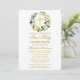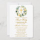 Elegant Watercolor Floral Wreath First Holy Communion Invitation includes yellow roses, white flowers and greenery. Gold Cross.