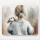 Watercolor Young Girl With Pet Rabbit Mouse Pad