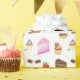Fun watercolor cakes, pies, fruit tart, chocolate candy, strawberries.