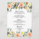 Modern watercolors peach and white garden flowers border, wedding menu template.