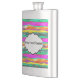 The product is a good size and came exactly as it was pictured. The lid is not attached to the flask, which could be dangerous on drunken nights... The print came out surprisingly well and looks very sharp. Would definitely recommend.