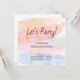 The watercolour design itself may feature elements such as flowers, foliage, abstract shapes, or a combination of these elements. The colours used in the design may be pastel, bright, or muted, depending on the theme of the party and the preferences of the person creating the invitation.