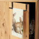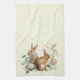 A watercolour rabbit with roses adorns the waffle-knit custom kitchen towel. Perfect for spring home decor. © Julie McIver